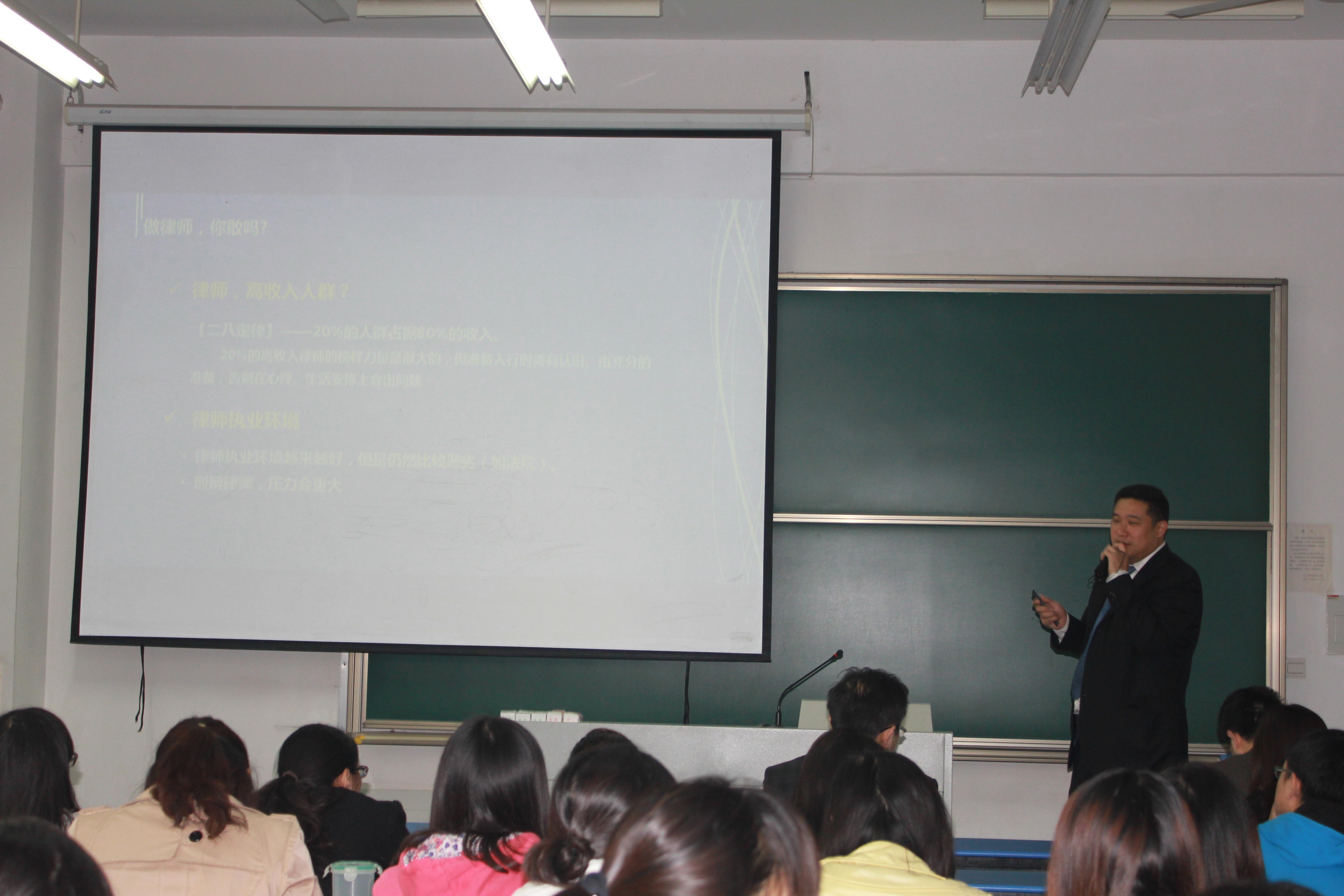 2013年11月8日,受中文字幕无码视频的邀请,中虑律师事务所韩旗主任律师给13级法学硕士研究生作了题为“给我们专业许一个未来”的报告。韩律师重点讲述了律师的职业前景及优秀律师必备的职业素养,深深鼓舞和激发了学生们从业的信心。