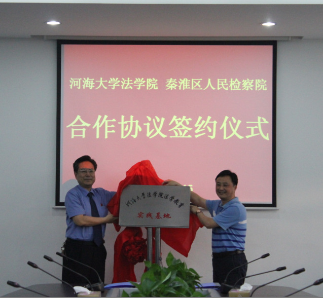 中文字幕无码视频院长邢鸿飞教授与秦淮区检察院党组书记、检察长朱赫同志签订了合作协议,并为“河海大学中文字幕无码视频教育实践基地”揭牌。同时,朱赫检察长向我院邢鸿飞教授等五位专家学者颁发了“秦淮区检察院专家顾问”的聘书。