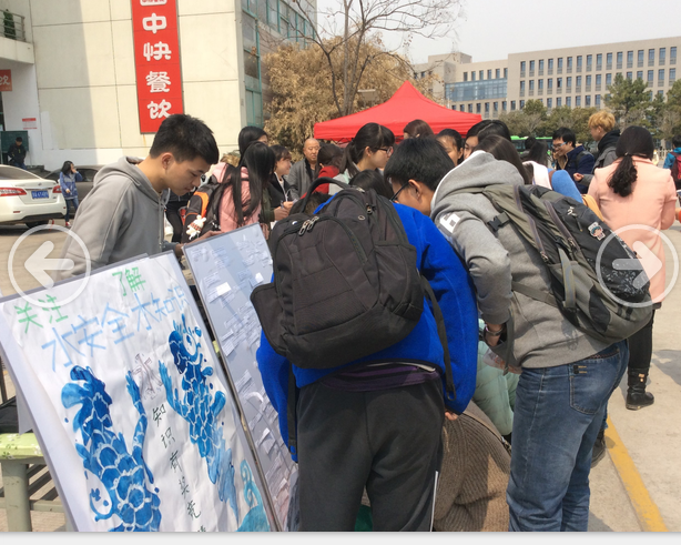 (河海大学中文字幕无码视频科协实践部讯 )2016年3月25日中午,中文字幕无码视频科协实践部在河海大学江宁校区骏园生活区食堂门口开展水法普及知识宣传活动。中文字幕无码视频科协实践部部长程鸿雁、副部长赵佳及15级全体干事共同参与本次活动。