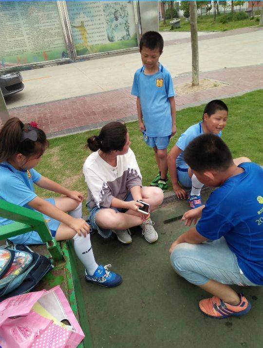 大兴小学的学生以本地人家的孩子为主,另外由于学校在体育方面,尤其是足球,有一定的知名度,所以也有少量的外地学生。其中本地孩子又以留守儿童为主。这两天恰逢学校举办一场足球邀请赛和暑期足球训练营,我支教队应学校邀请在这几天里给他们当志愿者,顺便也跟孩子们熟悉熟悉,为后面的正式支教活动奠定基础。在做志愿者的过程中,支教队与孩子们一起玩耍,带他们玩游戏,同时孩子们教支教队的同学们踢足球。上午的烈阳挡不住跟孩子们的交流,因为彼此都希望能把关系拉近。