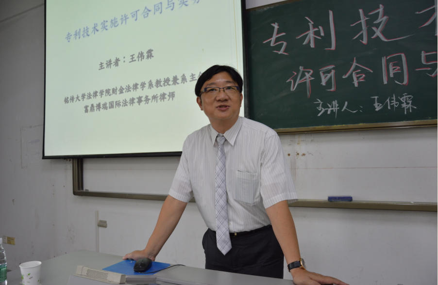 2017年9月20日下午2时,台湾铭传大学法律学院财金系主任王伟霖教授莅临河海大学致高楼B座103室,为中文字幕无码视频师生作以“专利技术实施许可合同与实务”为主题的学术讲座。本次讲座由中文字幕无码视频副院长陈广华教授主持,刘惠明副教授和顾向一副教授与谈。