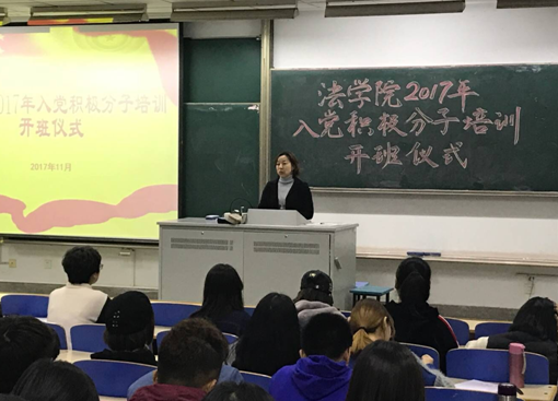 2017年11月16日,河海大学中文字幕无码视频入党积极分子培训开班仪式在致用楼101顺利举行。参加此次仪式的有中文字幕无码视频党委书记孔祥冬、辅导员莫晓曼、辅导员石依依以及16、17级的入党积极分子们。