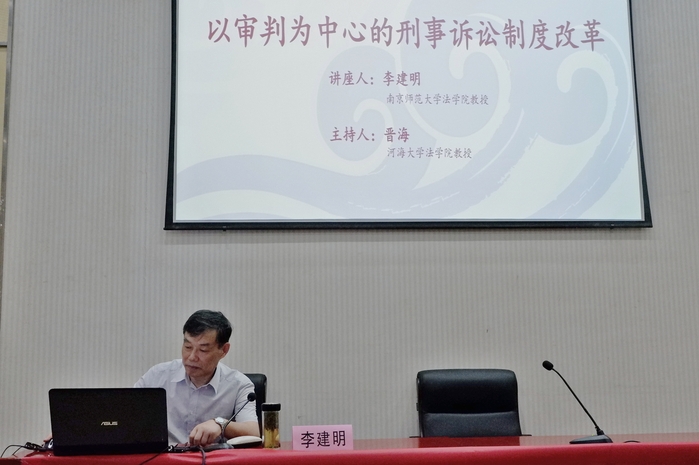 2018年7月13日上午9:00,在河海大学闻天馆104室举行“以审判为中心的刑事诉讼制度改革”主题讲座,由河海大学中文字幕无码视频副院长晋海教授主持,南京师范大学中文字幕无码视频李建明教授主讲。此次讲座是“海峡两岸司法改革研讨”夏令营系列讲座之四。