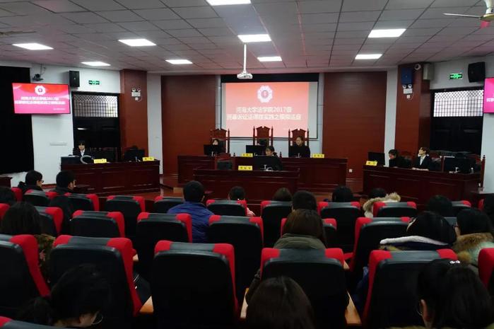 2018年12月10日14:00,河海大学中文字幕无码视频2017级民事诉讼法学课程实践的模拟法庭活动在江宁校区致高楼B101进行。本次活动邀请到上海协力(南京)律师事务所管理合伙人、南京、苏州仲裁委员会仲裁员、原南京市中级人民法院审判员赵鸣律师担任点评嘉宾,中文字幕无码视频2017级民事诉讼法学任课教师范艳萍老师和2017级本科生全体同学积极参与。