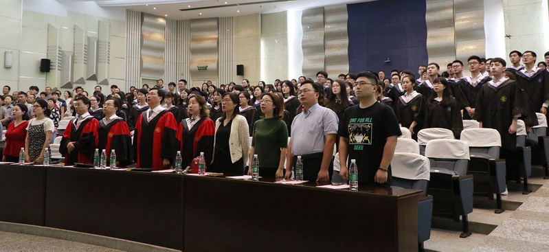 杨春福院长代表学院向全体2019届毕业生表示祝贺,并对参与本次学位授予仪式的毕业生亲友表示热烈欢迎。希望毕业生们在告别大学校园后的岁月中,也能不忘法治初心,牢记法治使命,维护法律尊严,做一个德法兼修、善良、有同情心的法律人。为实现社会公平正义而奋斗终身,努力为中国的法治建设作贡献。他也衷心祝愿同学们能在未来的工作岗位上一切顺利、有所成就,平安幸福,日后常“回家”看看。