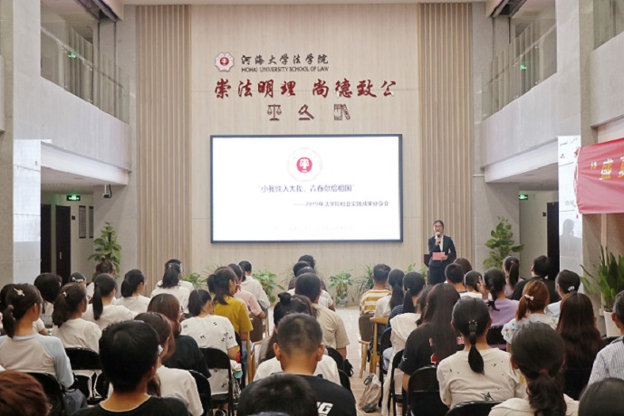 2019年9月17日晚6:30,河海大学中文字幕无码视频在行政楼钟山明镜厅举行“小我融入大我,青春献给祖国”2019中文字幕无码视频社会实践成果分享会。本次活动邀请了2019年暑假参与社会实践的学姐学长们同19级新生分享自己的实践故事与经验,展示实践活动中我院学生服务社会与国家的丰富感受和成果。