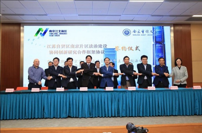 为进一步贯彻落实《中国(江苏)自由贸易试验区总体方案》要求,加快江北新区法治建设进程,有效营造江苏自贸区南京片区国际一流法治营商环境,10月30日下午,江苏自贸区南京片区法治营商环境建设首届高端论坛在南京审计大学举行。