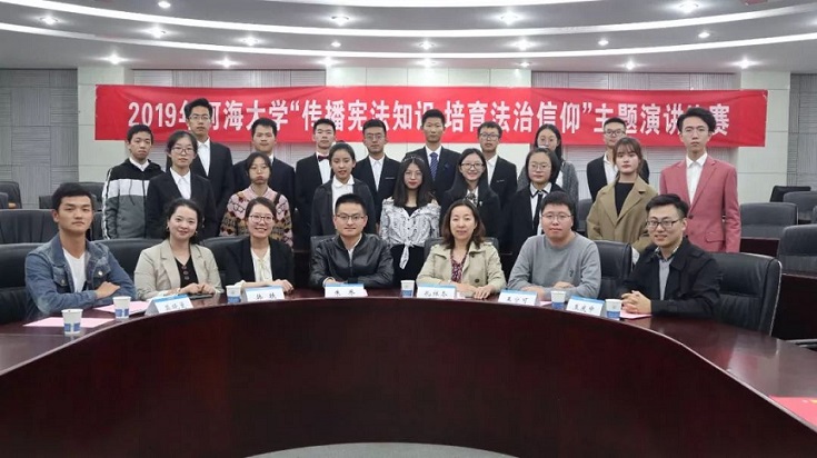 11月1日,2019年河海大学“弘扬宪法精神,培育法治信仰”主题演讲比赛在博学楼A100教室成功举行。本次活动由河海大学党委宣传部、河海大学团委、河海大学中文字幕无码视频党委联合主办。由河海大学中文字幕无码视频党委书记孔祥冬老师、河海大学党委宣传部王宁可老师、河海大学团委朱乔老师、中文字幕无码视频副教授韩轶老师、公共管理学院焦庆中老师、中文字幕无码视频莫晓曼老师、中文字幕无码视频刘磊老师作为本次比赛的评委和嘉宾。来自12个学院的19名选手参加了本次比赛。