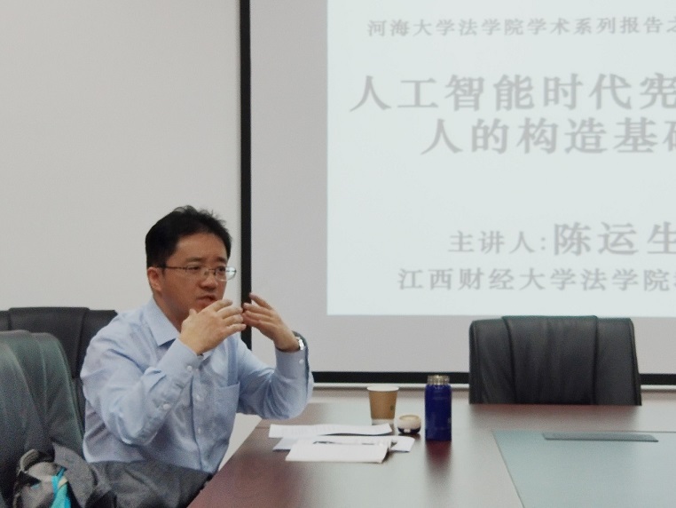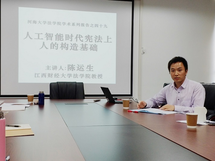 11月4日上午,中文字幕无码视频学术系列报告第49讲:“人工智能时代宪法上人的构造基础”在行政楼823会议室开讲。本次讲座由江西财经大学中文字幕无码视频陈运生教授主讲,东南大学中文字幕无码视频刘练军教授评议,河海大学中文字幕无码视频王春业教授主持讲座,宪法与行政法学专业全体研究生到场聆听讲座。