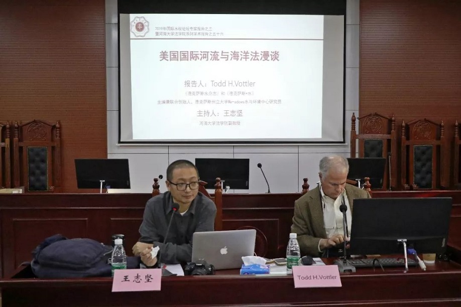 11月14日下午,“美国国际河流与海洋法漫谈”主题讲座在致高楼B座101模拟法庭成功举行。本次讲座由得克萨斯州立大学Meadows水与环境中心研究员Todd H. Vottler主讲,河海大学中文字幕无码视频王志坚副教授担任主持人。中文字幕无码视频部分师生参与了本次活动。