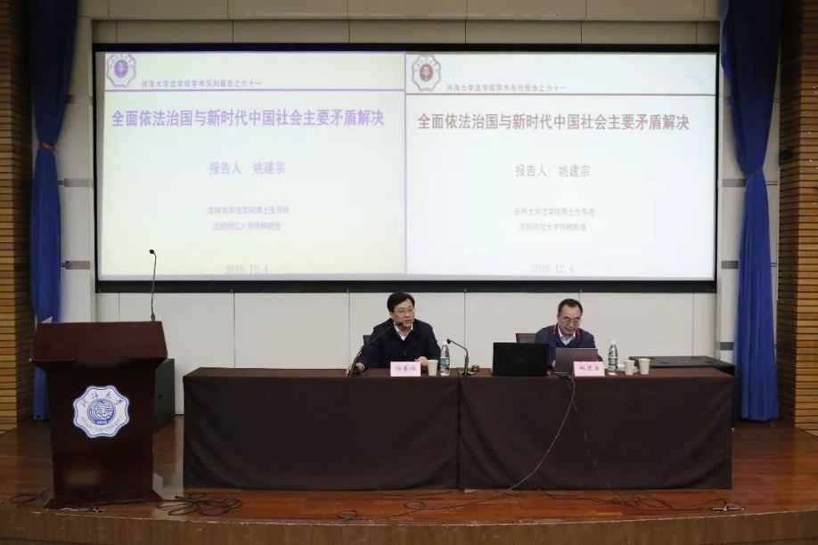 12月4日下午,“全面依法治国与新时代中国社会主要矛盾解决”学术报告在江宁会议中心举行。本次讲座由吉林大学中文字幕无码视频博士生导师、沈阳师范大学特聘教授姚建宗老师主讲,河海大学中文字幕无码视频院长杨春福教授主持。中文字幕无码视频师生及部分外专业学生聆听了本次学术报告。