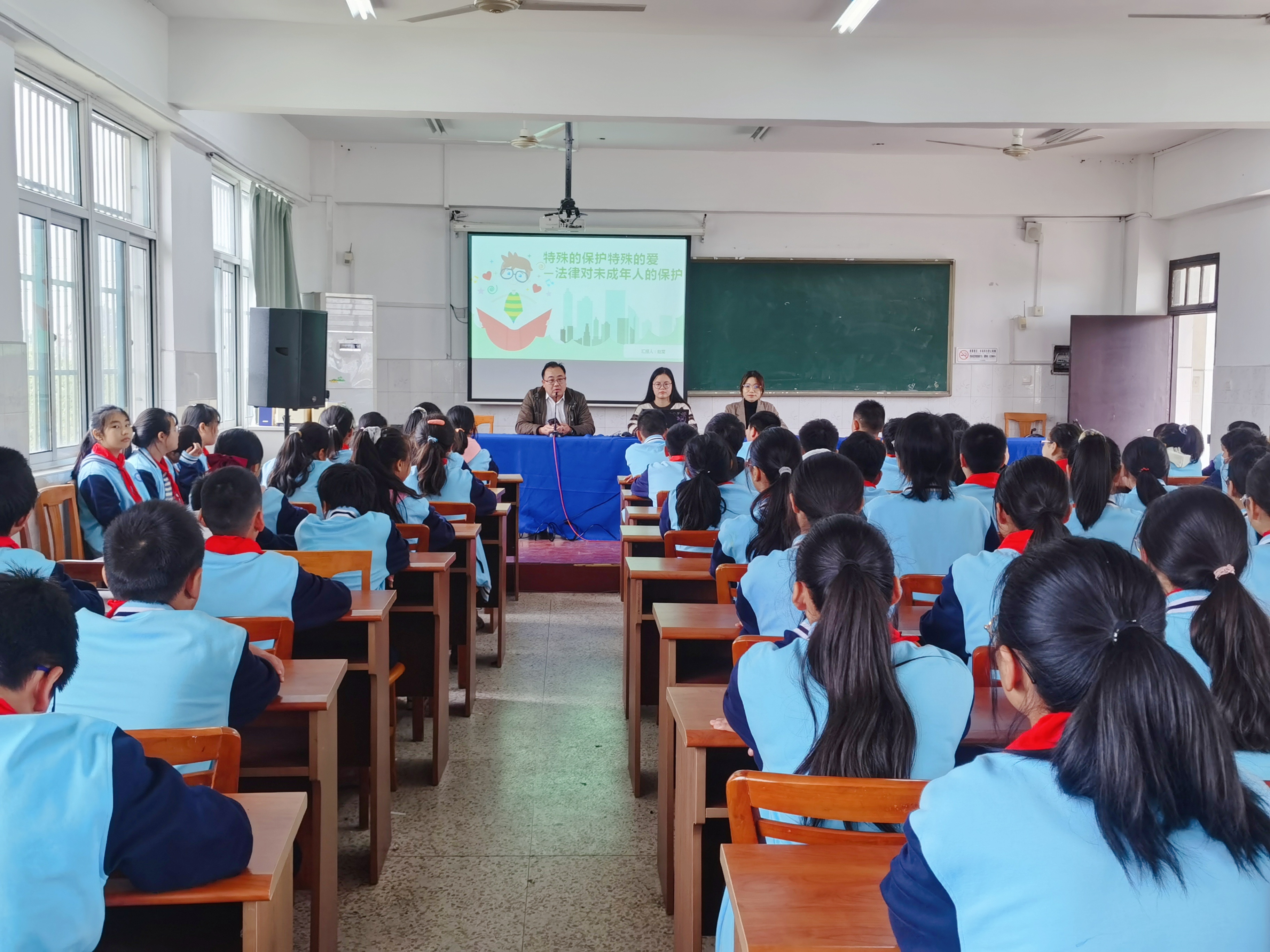 10月28日下午,河海大学法律援助中心两位法援志愿者赵雯、佘严才丹受邀参加东善桥中学2020—2021学年“特殊的保护特殊的爱——法律对未成年人的保护”主题讲座。东善桥中学的副校长潘晓斌和安全法制科主任李生林对河海法援志愿者的到来表示了热烈欢迎。