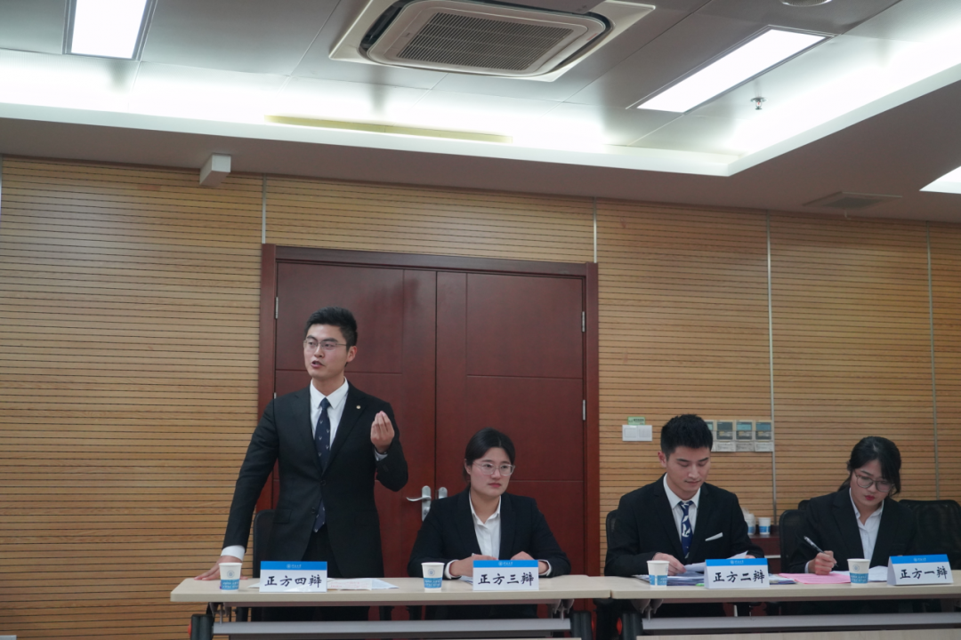 在攻辩环节和自由辩论的环节,双方辩手针锋相对,正方认为离婚冷静期可以有效避免冲动离婚,而且可以平衡登记离婚与诉讼离婚。反方认为离婚冷静期的设置存有较大缺漏,其产生的作用完全可以用更灵活的非强制性手段替代。最后的总结陈词,双方四辩再次表明了己方的观点,明确了各自立场,做出了精彩的总结发言。