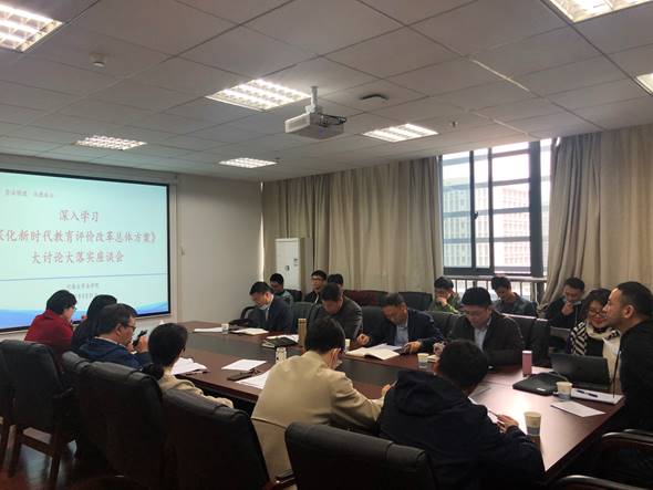 会前,师生认真学习了《深化新时代教育评价改革总体方案》(以下简称《总体方案》)。会上,大家在学习的基础上,围绕改进高等学校评价、改革教师评价、改革学生评价以及方案组织实施等方面开展交流研讨,发表学习体会。大家一致认为,《总体方案》的出台具有重大意义,是指导深化新时代教育评价改革的纲领性文件。《总体方案》内容全面,从大家关注的教育问题入手,破立并举,推进教育评价关键领域改革取得实质性突破。在《总体方案》的具体落实上还要进一步思考,制定科学且具有操作性的措施。学生们还对教育教学管理中存在的问题提出了意见和建议。师生代表踊跃发言,认真思考,气氛热烈。