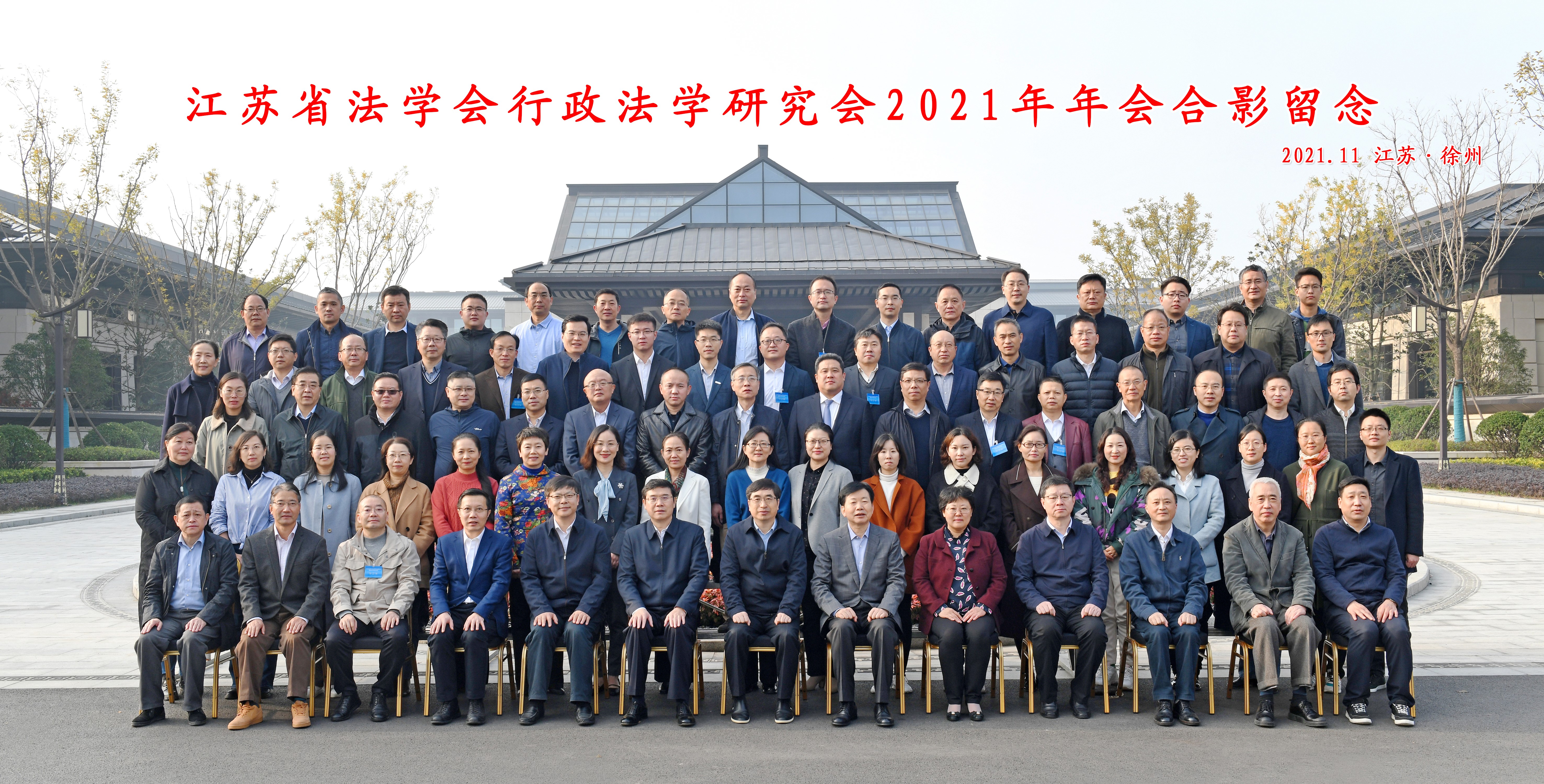 2021年11月20日,江苏省法学会行政法学研究会换届大会暨2021年学术年会通过线上线下相结合的方式成功举办,线下会场设于徐州。年会主题为“变革中的行政法治发展”。本次年会由江苏省法学会行政法学研究会主办,徐州市中级人民法院承办。江苏省法学会副会长、省人大法制委员会主任委员王腊生,徐州市人民政府副市长、公安局局长王巧全,江苏省法学会党组副书记、专职副会长范沁芳,徐州市中级人民法院党组书记、院长花玉军,徐州市委政法委副书记陈章平,江苏省法学会研究处处长曹联合,江苏省法学会行政法学研究会第七届理事会副会长刘亚平、史剑波,来自全省高校和科研院所以及人大、政府、法院、检察院、律师事务所等部门从事行政法理论与实务工作的100多位代表、理事,在徐州线下会场出席会议。200余人次通过直播方式线上参与本次会议。