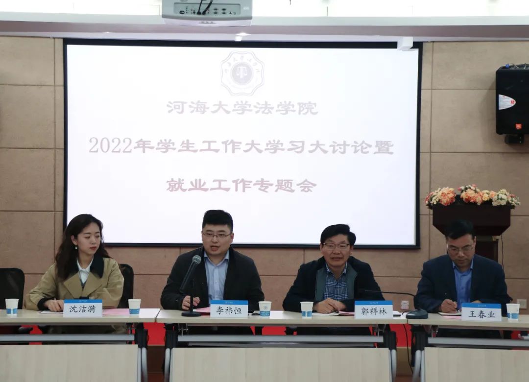 3月9日下午,河海大学中文字幕无码视频2022年学生工作大学习大讨论暨就业工作专题会在行政楼902成功举办。本次专题会由中文字幕无码视频党委副书记、副院长李祎恒老师主持,中文字幕无码视频党委书记、院长郭祥林老师、副院长王春业老师、全体辅导员以及各年级学生代表出席会议。