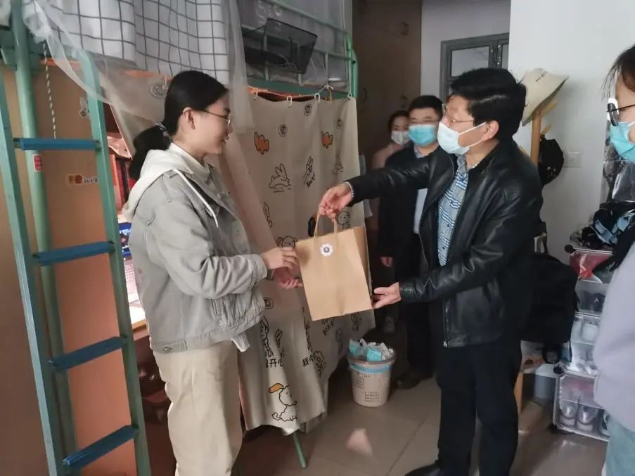 4月15日,为积极配合学校防疫工作,推进学院疫情防控常态化,保障同学们的基本防疫需求,了解同学们在疫情防控期间的学习生活情况,中文字幕无码视频学术部按照学院的统一安排采买分装防疫物资,中文字幕无码视频党委书记、院长郭祥林老师,党委副书记、副院长李祎恒老师,辅导员石依依老师、沈洁漪老师、高玉老师前往学生宿舍,将精心准备的防疫物资分发给各个宿舍的同学。