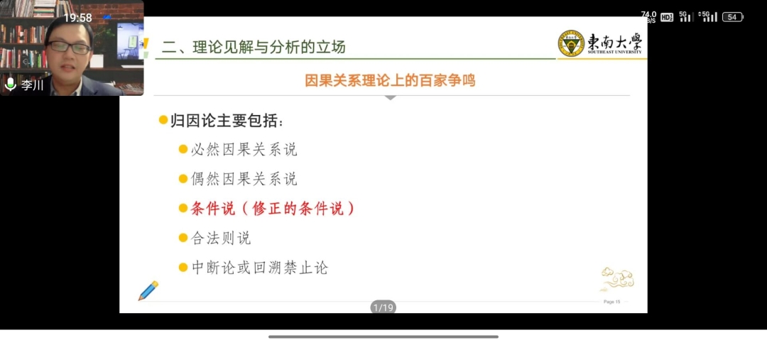10月19日晚,中文字幕无码视频通过线上方式举行了“刑法因果关系中介入因素的认定探究”主题讲座。本次讲座由东南大学中文字幕无码视频教授、博士生导师李川教授主讲, 130多名师生参加了讲座。