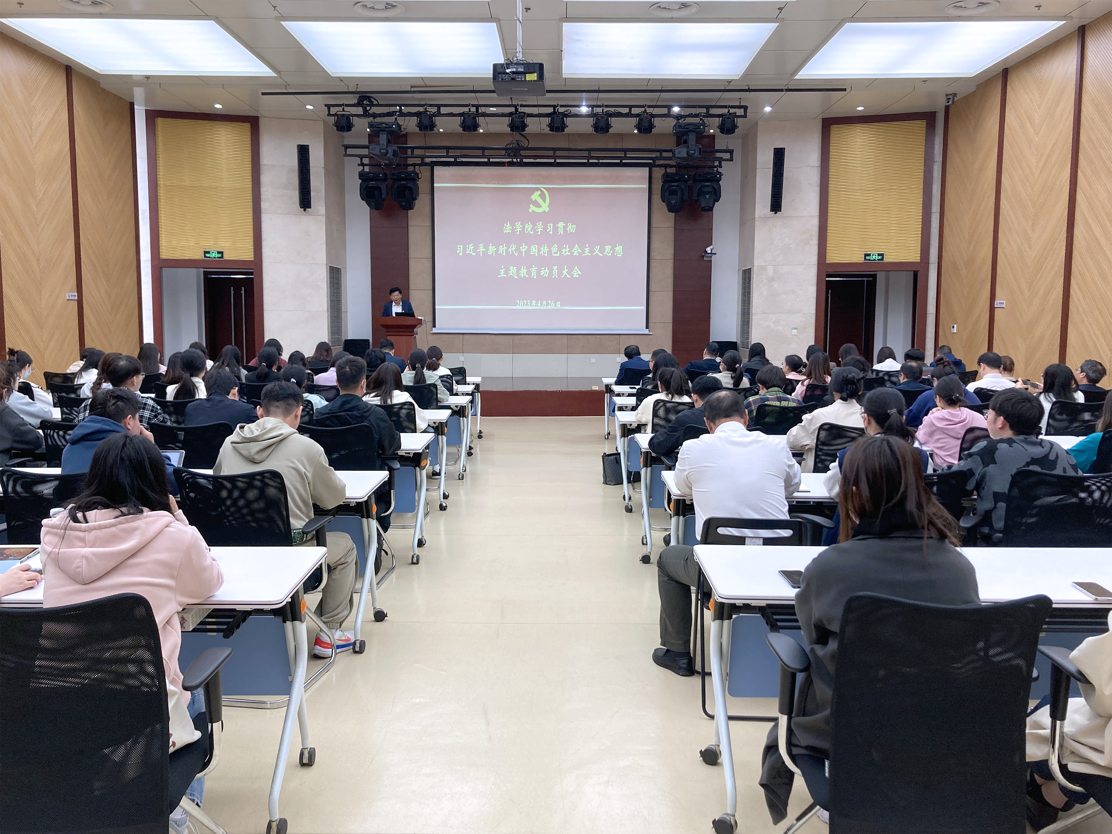 4月26日,中文字幕无码视频召开学习贯彻习近平新时代中国特色社会主义思想主题教育动员大会,深入学习贯彻习近平总书记在主题教育工作会议上的重要讲话精神,全面落实学校主题教育开展的具体要求,对学院主题教育各项工作进行动员部署。院党委书记、院长郭祥林作动员讲话。学院领导班子、院党委委员、党支部书记、研究所负责人、师生党员代表参加会议。会议由院党委副书记、副院长李祎恒主持。