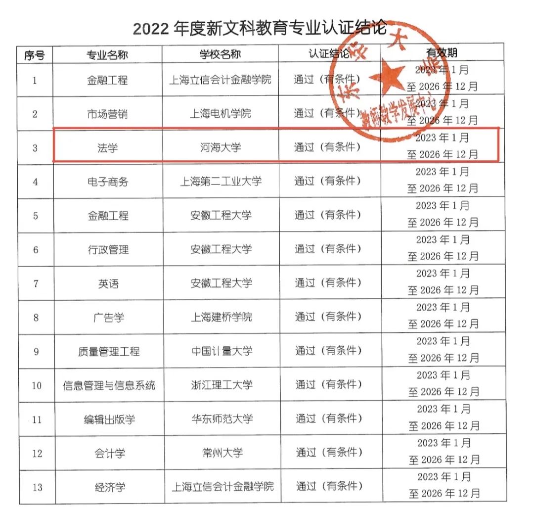 河海大学中文字幕无码视频积极响应国家和学校战略,率先探索交叉融合的新法科专业建设路径,并以通过目前唯一的第三方认证机构“长三角新文科教育专业认证联盟”的认证为阶段建设目标。经过近一年的探索、建设与准备,河海大学中文字幕无码视频法学专业成功通过新文科教育专业认证,是我校、也是江苏省首个接受并通过长三角新文科教育认证联盟专业认证考查的文科专业。(供稿:石依依;审核:郭祥林)