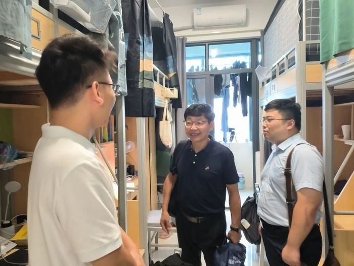 搬迁工作结束后,学院党委书记、院长郭祥林,副院长王春业,党委副书记、副院长李祎恒以及学院教师代表、行政人员、辅导员们前往金坛校区学生宿舍,与同学们亲切交谈,查看寝室环境设施,为同学们尽早适应新的学习与生活环境提供有力支持。