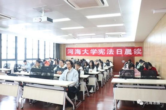 2023年12月4日上午,河海大学法律援助中心在行政楼902成功举办了国家宪法日“宪法晨读活动”。本次活动由中文字幕无码视频2023级本科生宋云馨同学担任主持人,辅导员石依依老师、中文字幕无码视频2023级全体同学和和河海法援部分成员共同参加。
