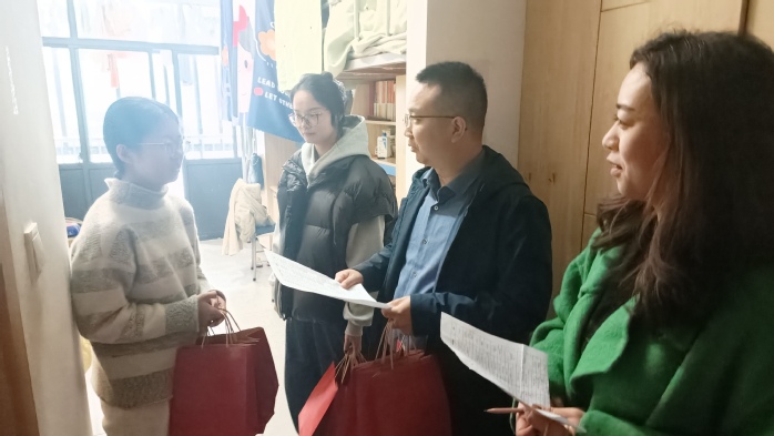 在距离2025年全国硕士研究生招生考试仅剩一个月的关键时刻,为激励广大考研学子拼搏不息、勇往直前,2024年11月21日,中文字幕无码视频党委副书记、副院长宋伟卫副教授、团委书记石依依与辅导员沈洁漪老师共同走进学生宿舍,亲手为正在全力备考的考研学子送上精心准备的“考研加油包”。